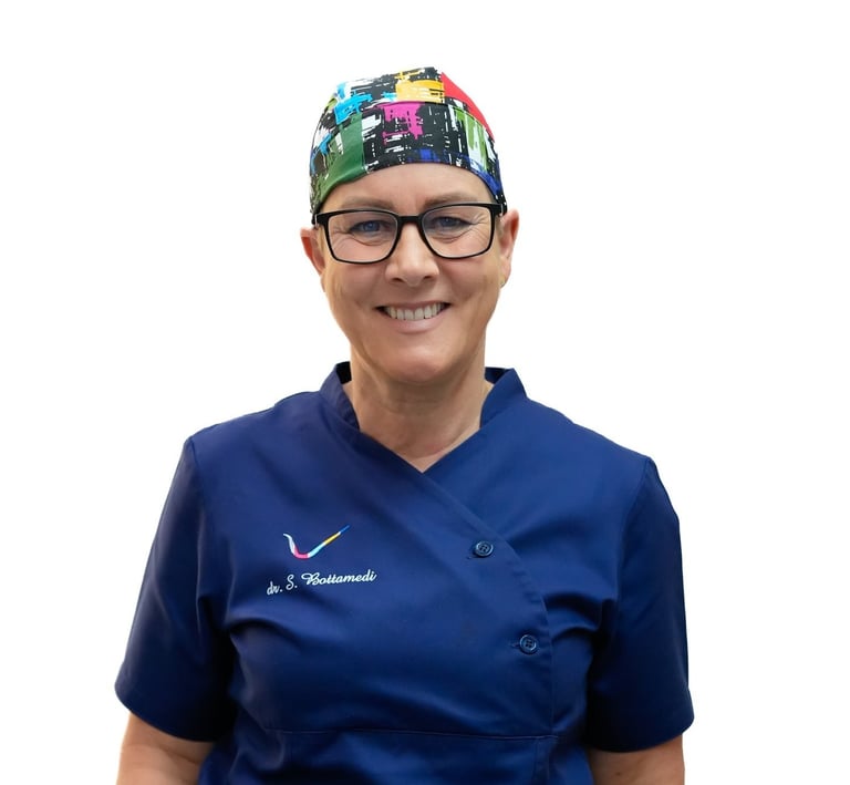 Dott.ssa Bottamedi Sabrina, laureata con lode a Verona in Odontoiatria e P.D. nel 1991, abilitata alla professione in dicembre dello stesso anno. Titolare a Trento con il dott. Tomasi Cristiano e il dottor Giacomo Varotto dello studio odontoiatrico associato dott. Tomasi – dott. Bottamedi – dott. Varotto, dove si occupa a titolo esclusivo di protesi, ortodonzia e gnatologia. Dal 1992 al 1998 è stata collaboratrice dello studio associato dott. Broseghini - dott. Dell’Acqua a Pergine (pedodonzia, conservativa ed ortodonzia). Ha frequentato numerosi corsi di formazione professionale, approfondendo la branca dell’ortodonzia; in particolare dal ’95 un corso triennale in ortodonzia tenuto dal Dott. Pizzoni a Milano, nel ’98 un corso biennale di biomeccanica ortodontica dell’adulto tenuto dal Dott. Fiorelli e dalla Prof.ssa Melsen dell’Università di Aarhus in Danimarca, con settimana di frequenza finale presso il dipartimento ortodontico della stessa università. E’ socia attiva della SIDO (Società Italiana di Ortodonzia) dal 1997. Dal 1998 ha iniziato ad occuparsi di protesi fissa e mobile, di protesi estetica e di protesi su impianti. Ha frequentato un corso annuale in Protesi tenuto dal Dott. Castellani. Nel 2002-2003 ha seguito un corso biennale su riabilitazioni impianto-protesiche complesse presso l’Ariminum con i docenti dell’Università di Goteborg. Nel 2003 e 2004 ha frequentato un corso di Estetica minimamente invasiva (ceramica integrale) a Goteborg dal dott. Toreskorg. E’ socia attiva della IAO (ex SIO) dal 2007. Partecipa del 2002 ad attività di ricerca in collaborazione con il dott. Tomasi Cristiano. Dal 2016 frequenta la scuola VIESID, unica scuola riconosciuta a livello mondiale della filosofia gnatologica di Rudolf Slaviceck (università di Vienna). Sta applicando i principi articolari, muscolari e occlusali di tale scuola in campo protesico ed ortodontico (approccio secondo dott. Sato). Docente di “Elementi di merceologia e materiali” per il corso ASO di Trento dal 2022.